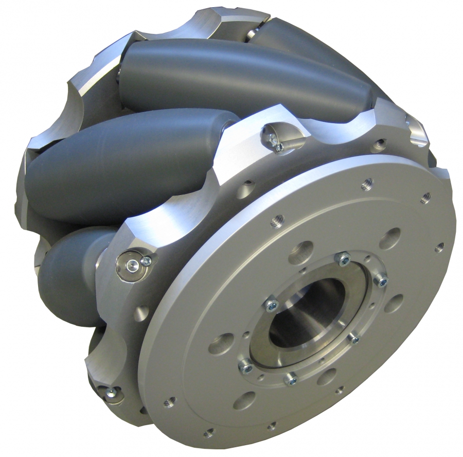 Mecanum-Rad inklusive Radlager. Einfache Implementierung in fremdangetriebene Systeme. Raddurchmesser 300 mm.